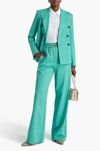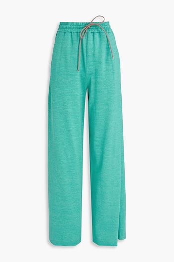 بنطلون بقصة واسعة من الأسفل من نسيج بحبكة كروشيه بلون معدني