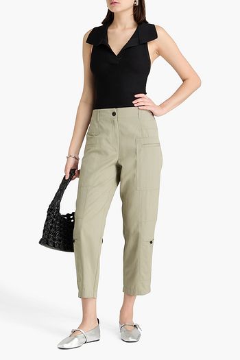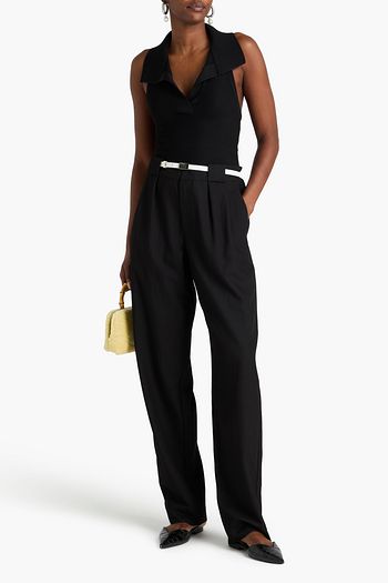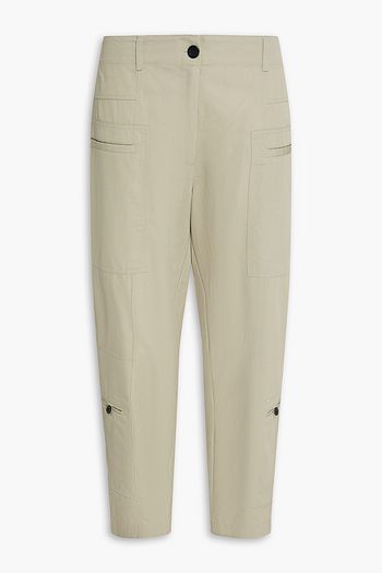 Belted cotton and linen-blend twill wide-leg pants
