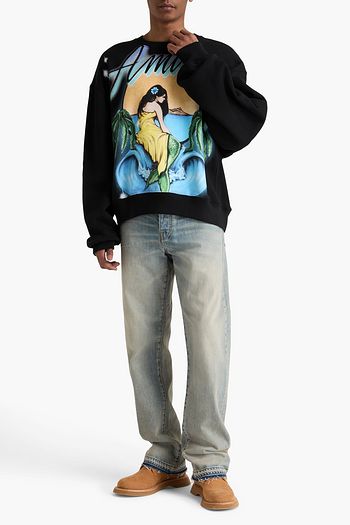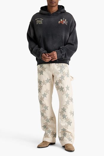 كنزة هودي مبيضة من مزيج القطن والصوف الناعم ومزينة بطبعات
