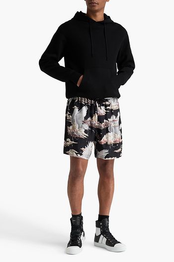 شورت من حرير تويل مزين بطبعات ومزود برباط شد
