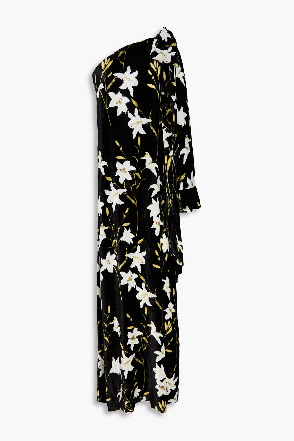 BERNADETTE فستان طويل من المخمل بِكُم واحد بطبعة الأزهار