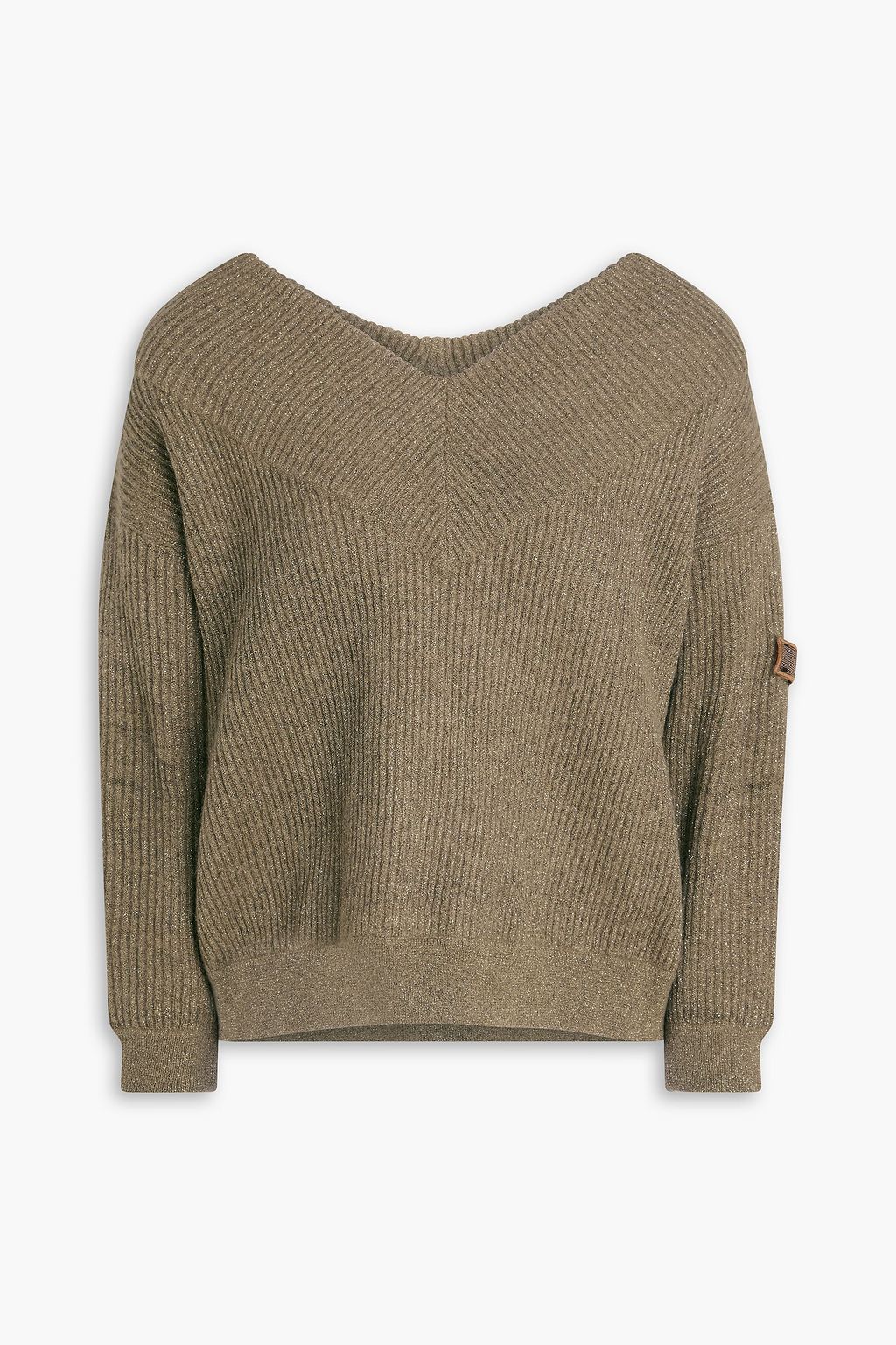 BRUNELLO CUCINELLI كنزة رياضية من نسيج بحبكة مضلّعة مزينة بالخرز وبلون معدني