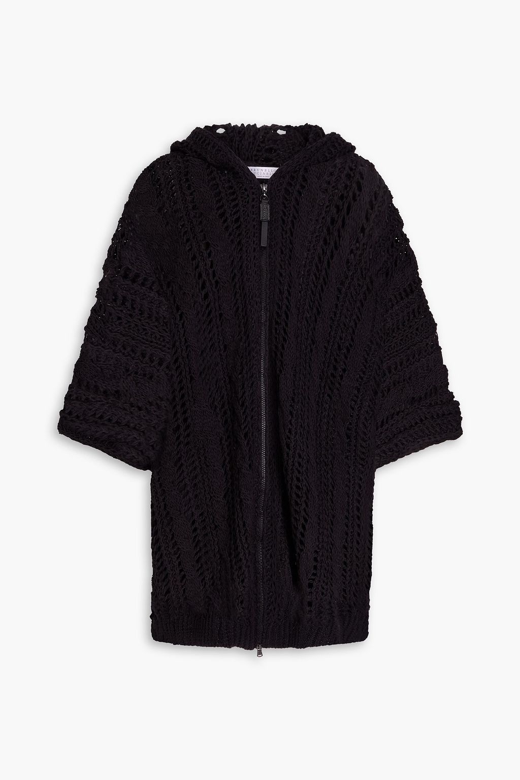 BRUNELLO CUCINELLI كارديغان بقبعة من مزيج الجوت بحبكة مفتوحة مزين بالخرز
