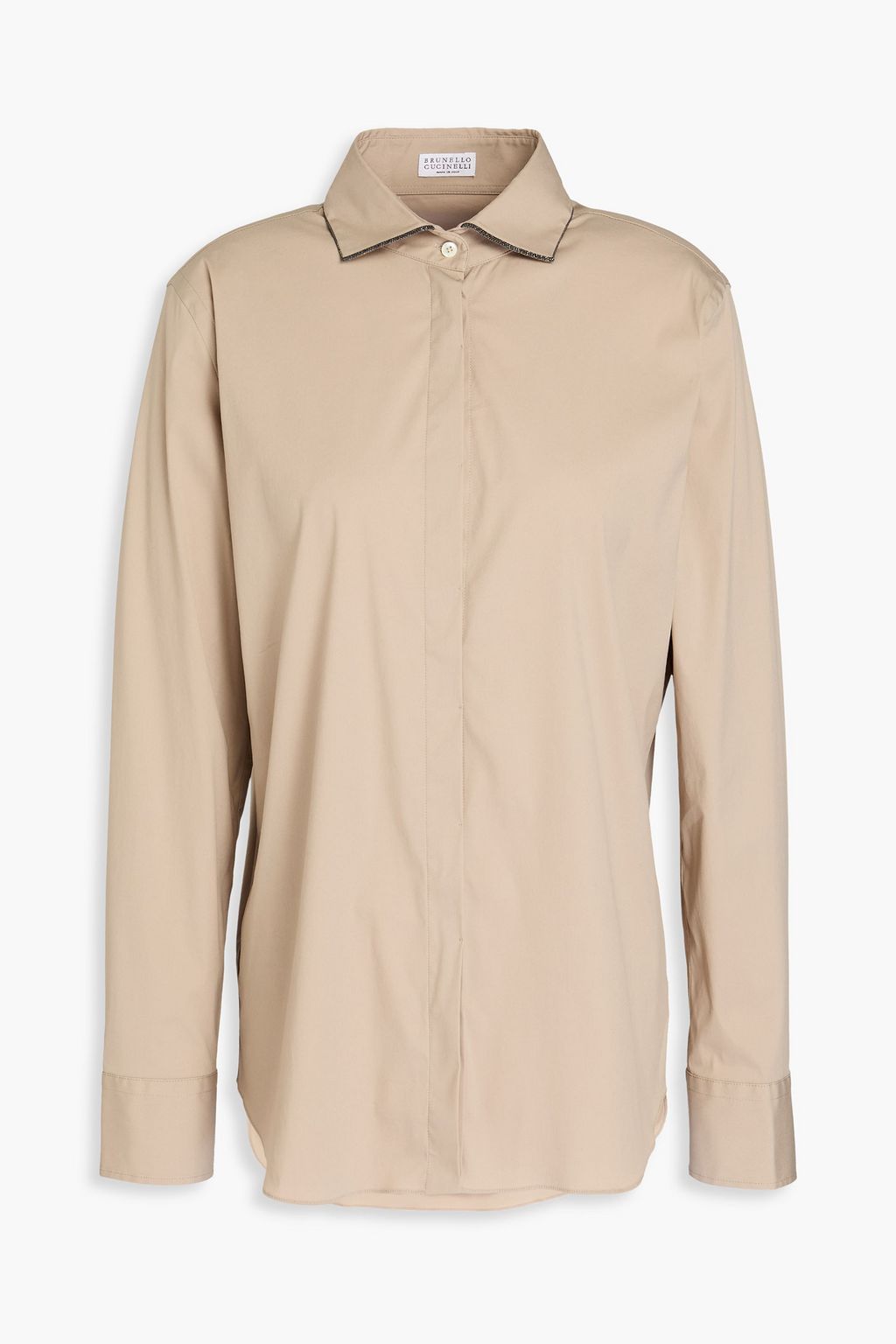 BRUNELLO CUCINELLI قميص من البوبلين المصنوع من مزيج من القطن ومزين بالخرز