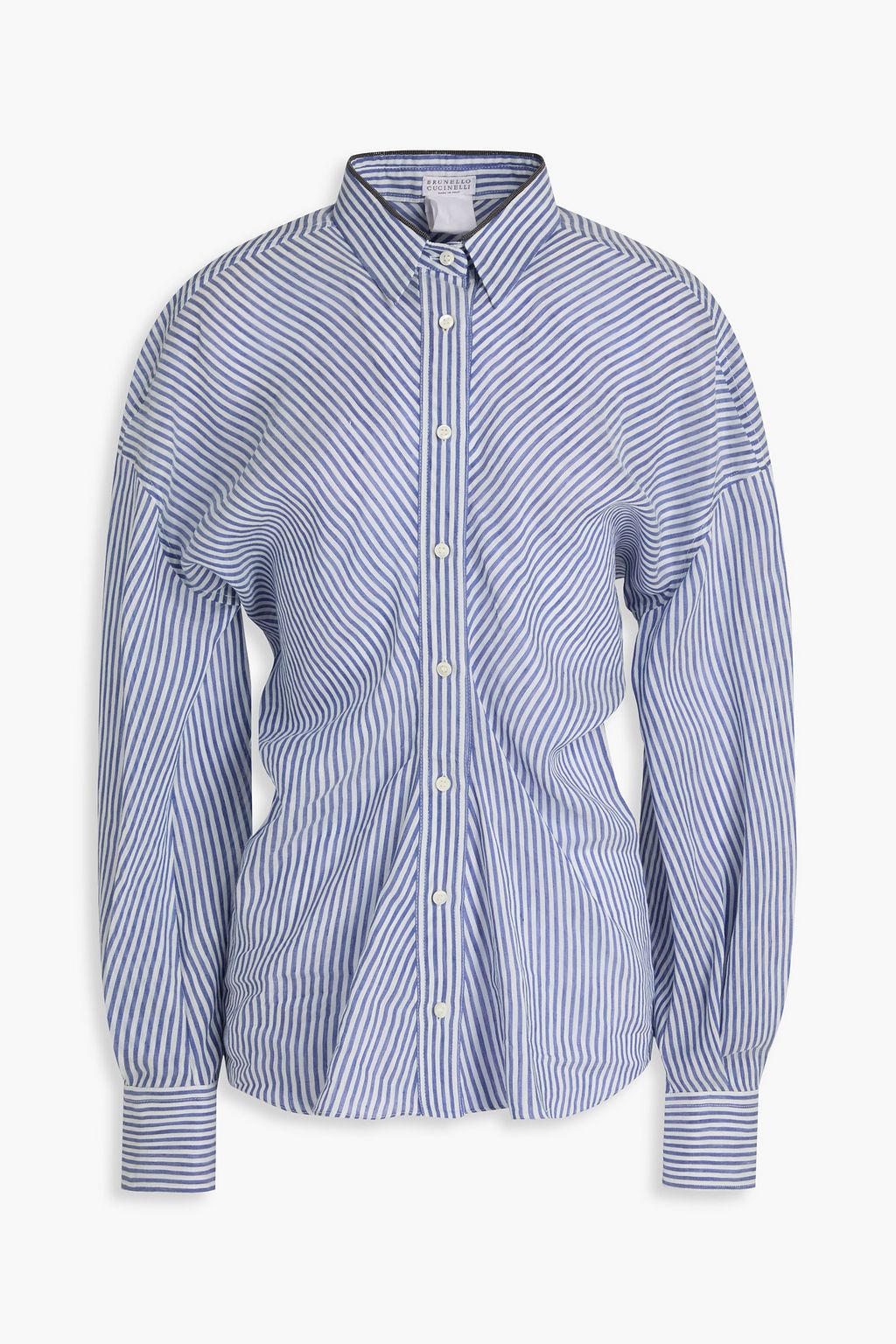 BRUNELLO CUCINELLI قميص من مزيج الحرير والكتان مخطط