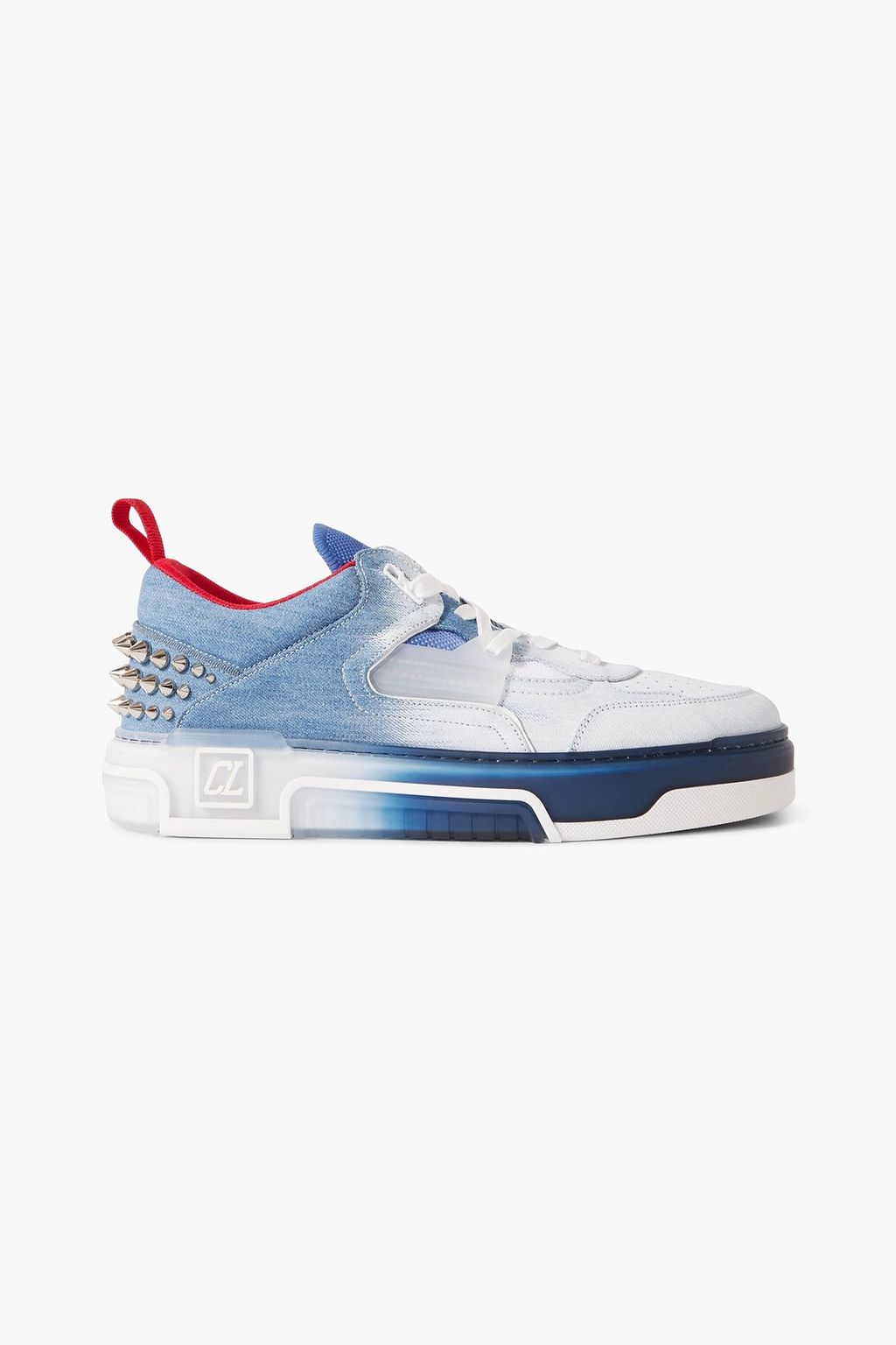 CHRISTIAN LOUBOUTIN Astroloubi spiked dégradé denim and mesh sneakers