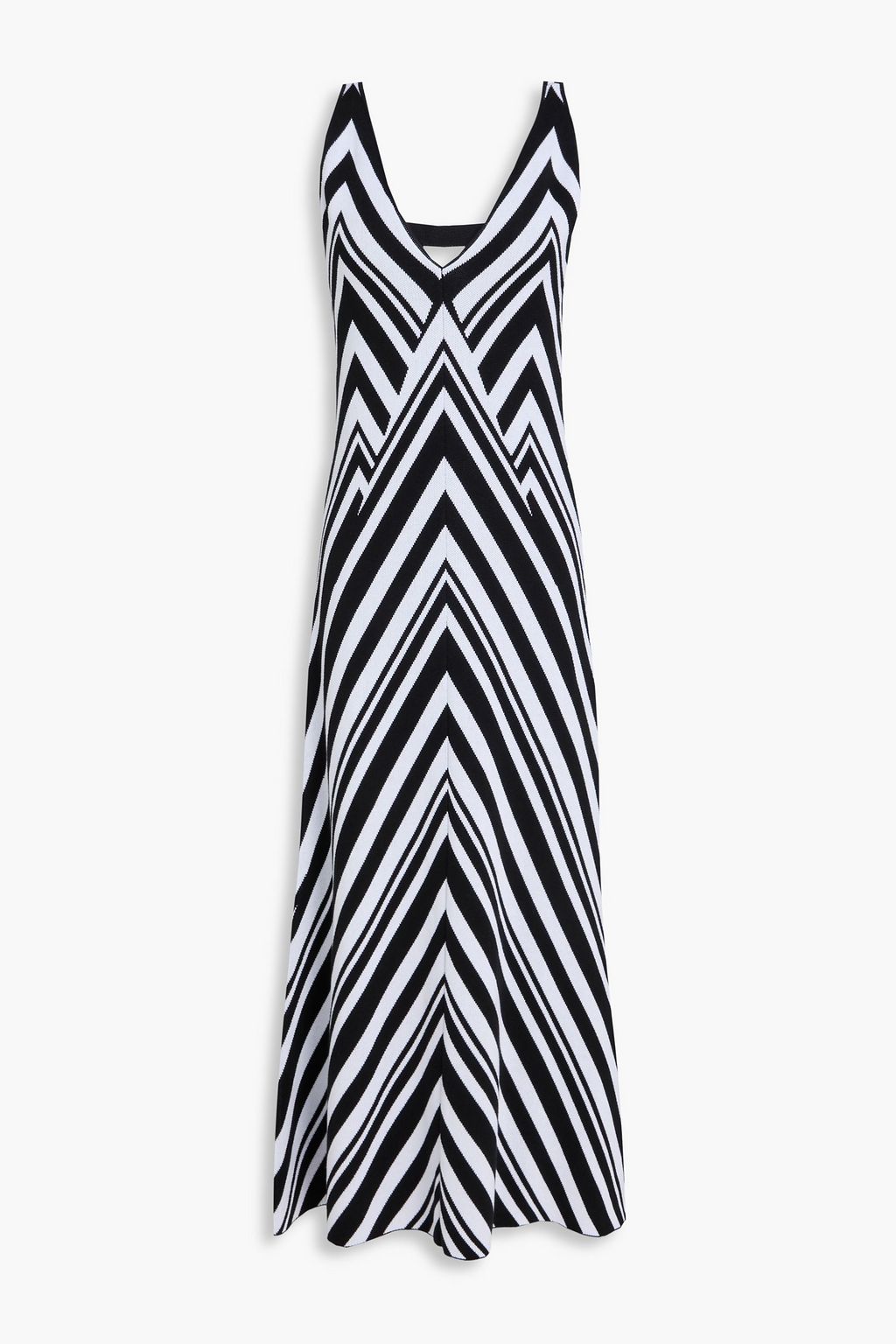FARM RIO فستان متوسط الطول من مزيج المودال والقطن المخطط بأجزاء مقصوصة
