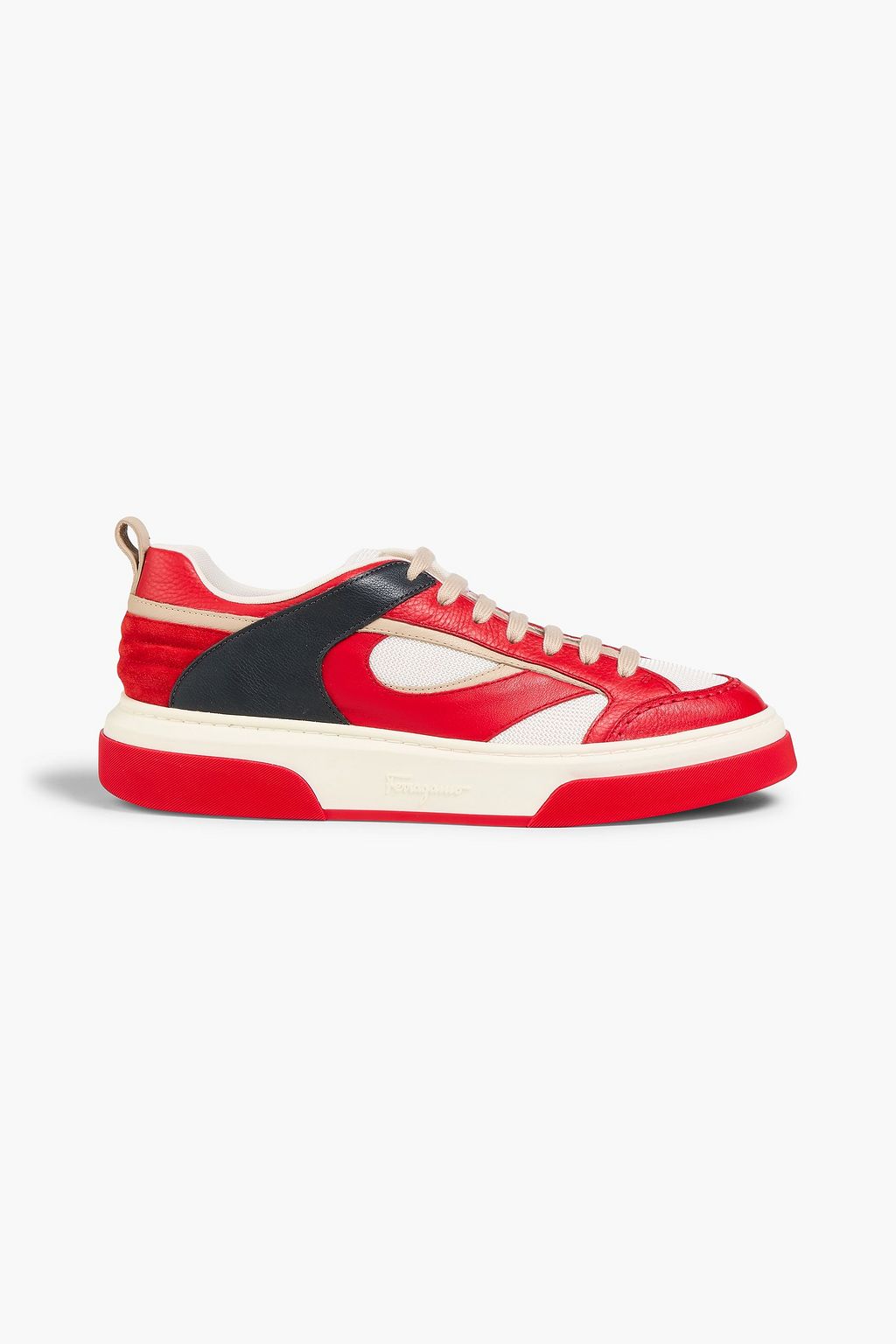 FERRAGAMO حذاء سنيكرز من الجلد بأقسام متباينة الألوان