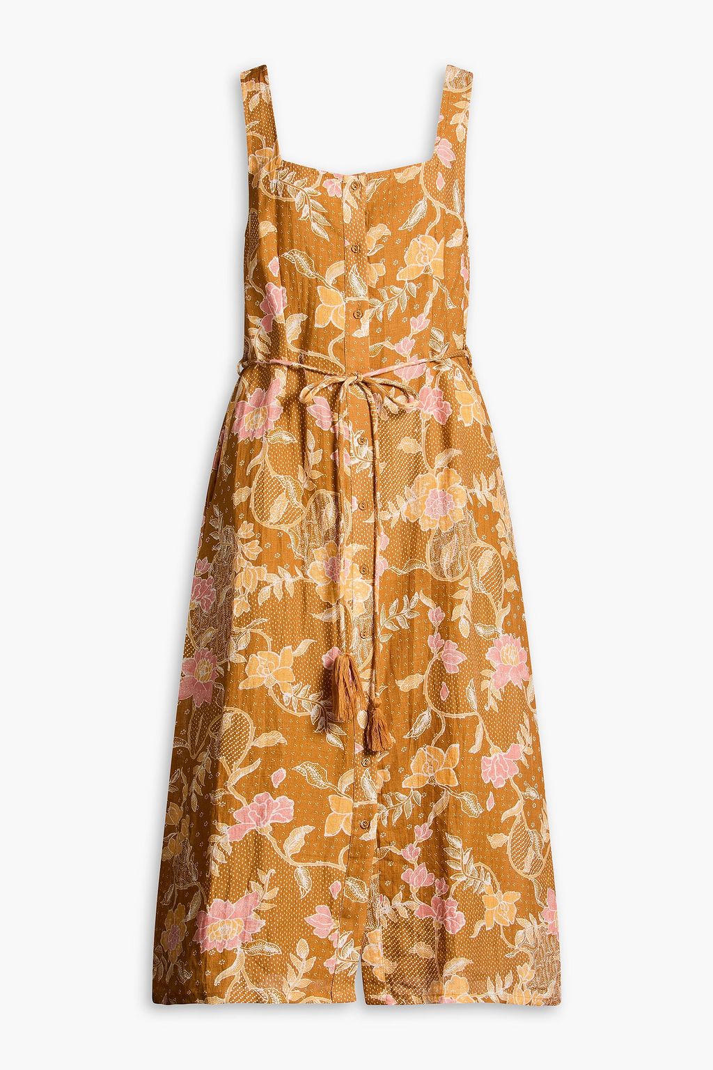 HANNAH فستان "بالوما" متوسط الطول من الكتان مزين بطبعات