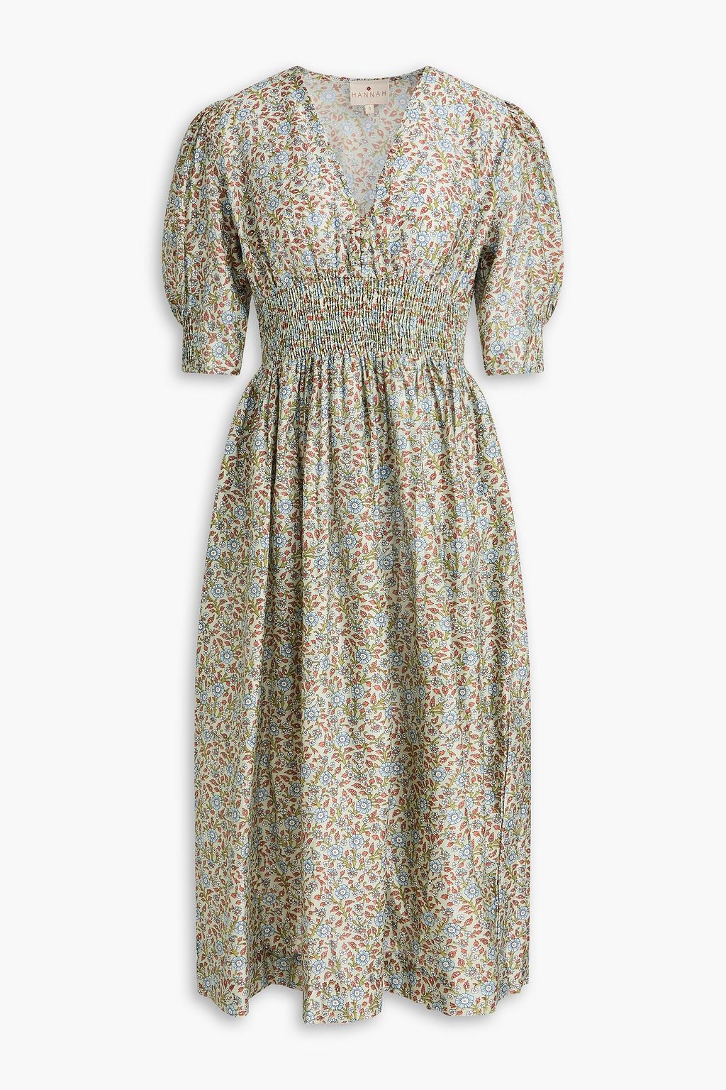 HANNAH فستان "صوفيا" متوسط الطول من مزيج الحرير والقطن مزين بطبعة الأزهار