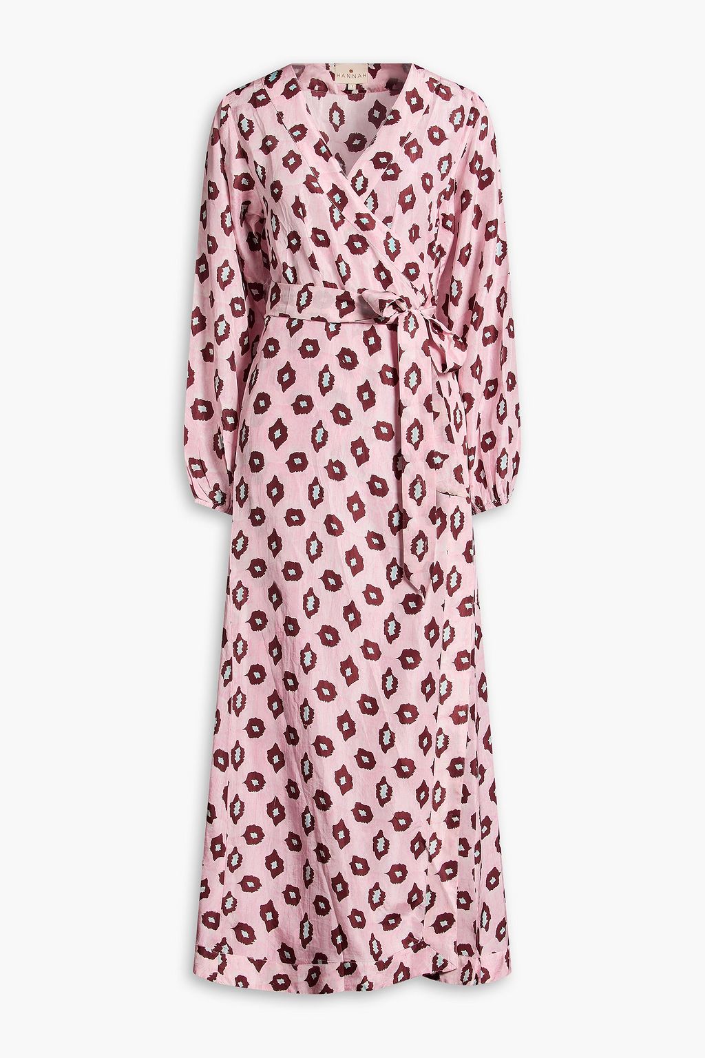 HANNAH فستان "لونا" متوسط الطول بتصميم ملتف من الحرير مزين بطبعات