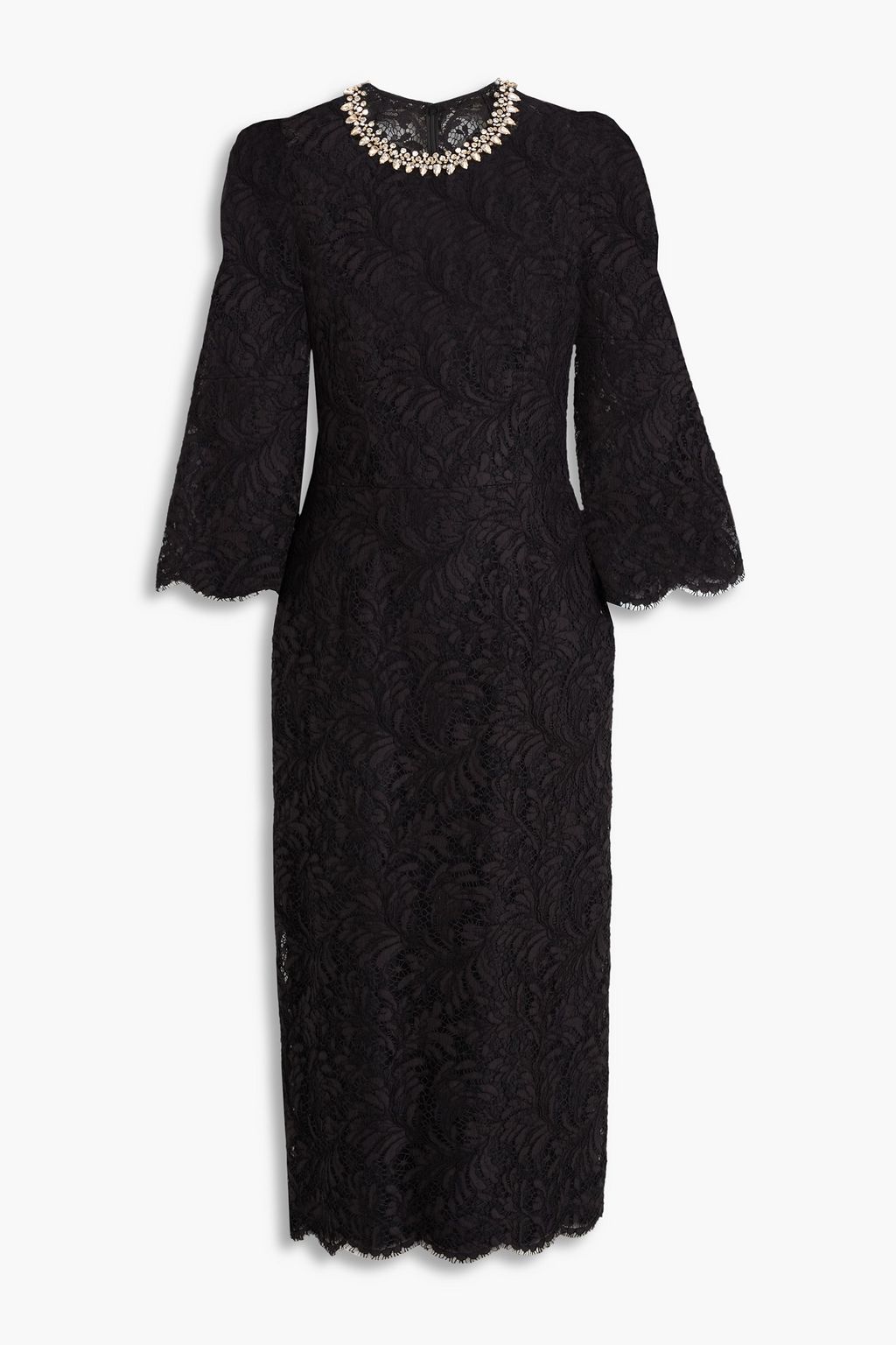 JENNY PACKHAM فستان متوسط الطول من الدانتيل المفرّغ المصنوع من مزيج من القطن ومزين بالكريستال