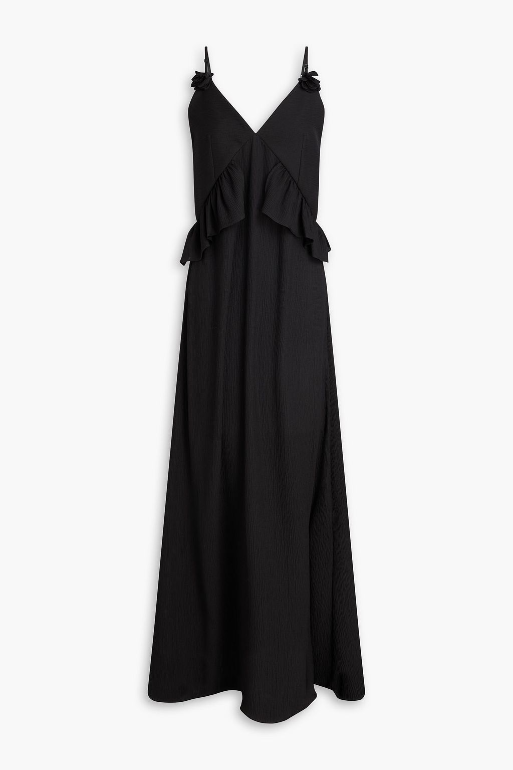 KIKA VARGAS Bel floral-appliquéd hammered crepe de chine maxi dress