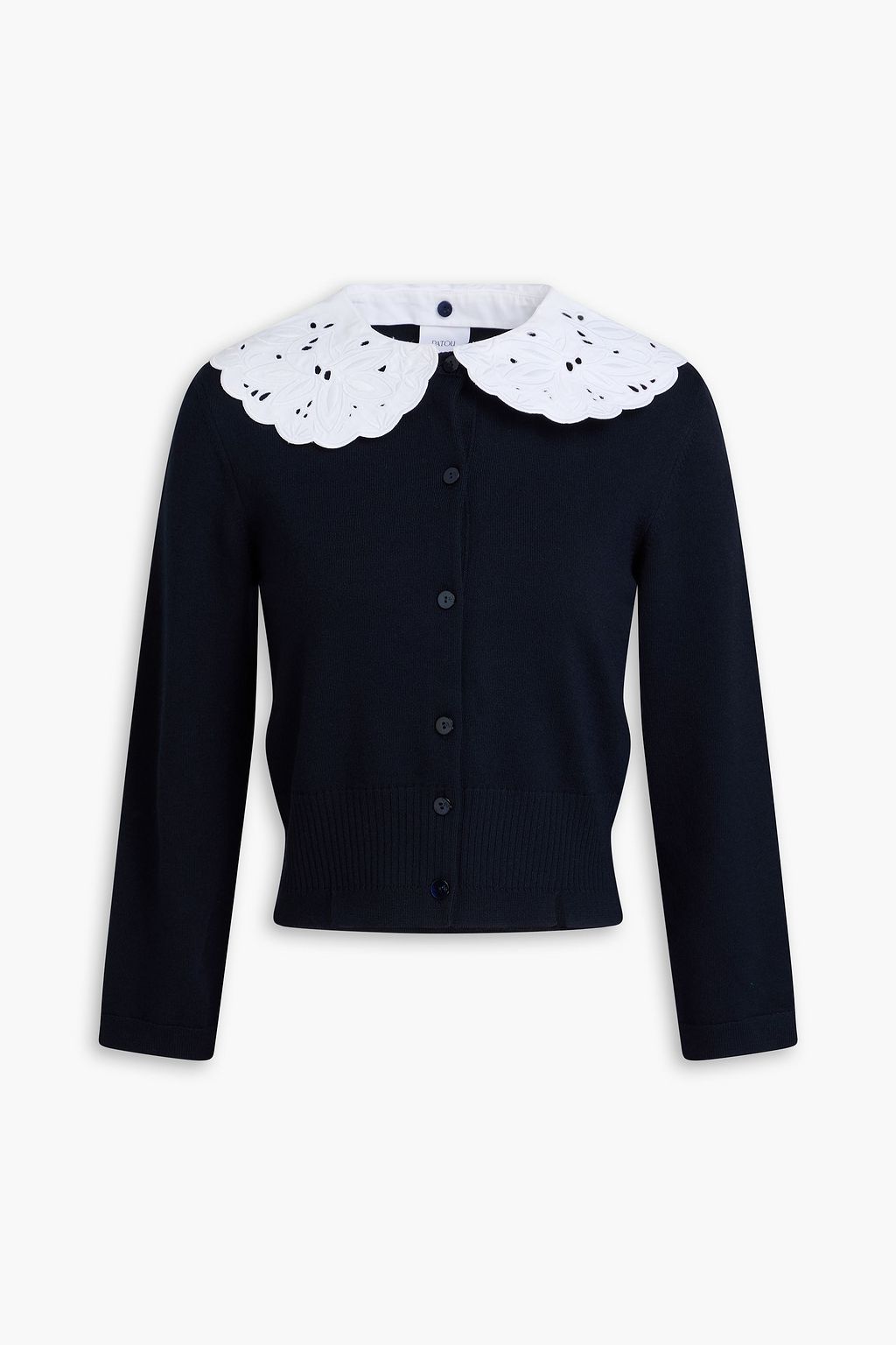 PATOU كارديغان من مزيج صوف المارينو بحواف من البوبلين