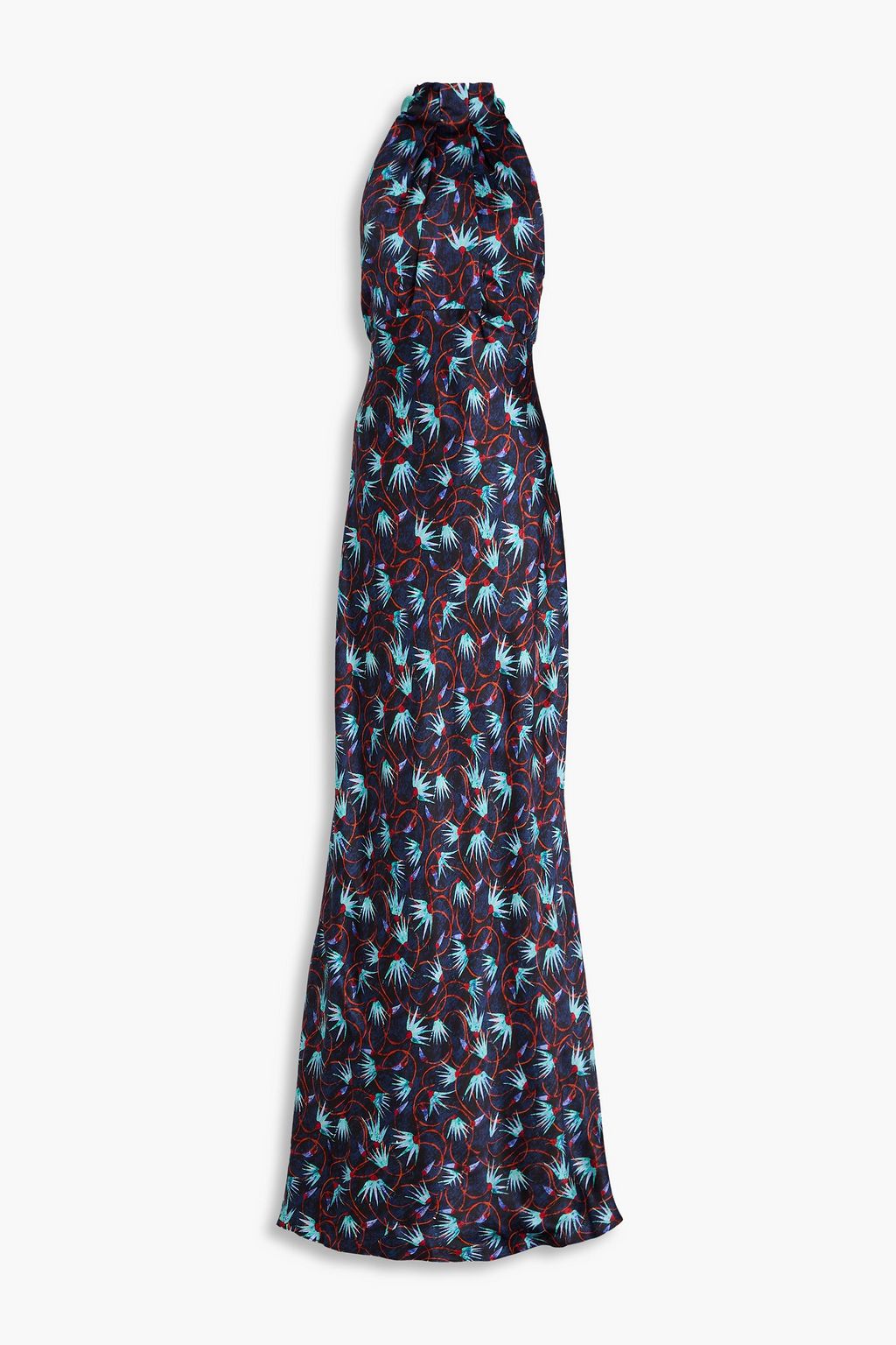 SALONI فستان طويل من حرير صيني مزين بطبعات