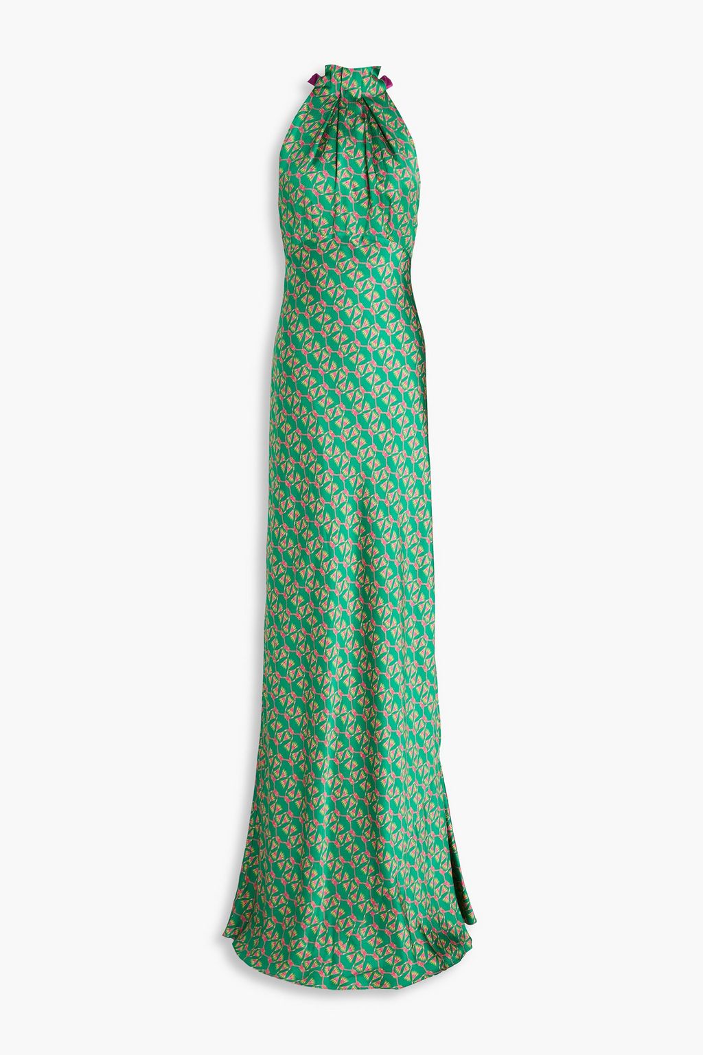 SALONI فستان طويل من حرير صيني مزين بطبعات