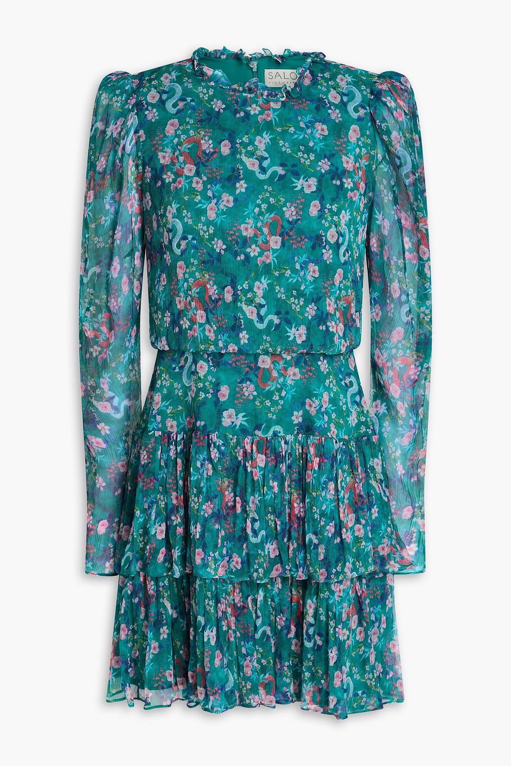 SALONI فستان قصير من حرير جورجيت مزين بطبعة الأزهار