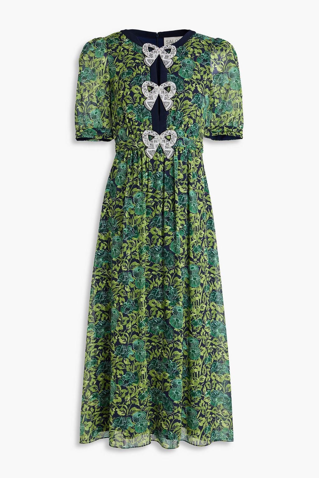 SALONI فستان متوسط الطول من الحرير الصيني بتصميم مزركش مزين بطبعة الأزهار