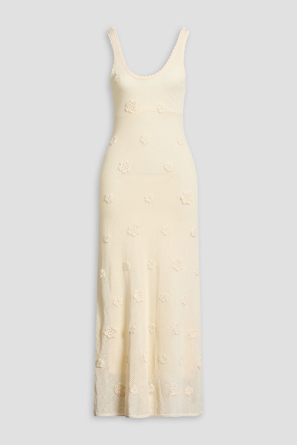 SANDRO فستان طويل من نسيج محبوك بنمط كروشيه ومزينة بزخارف الأزهار
