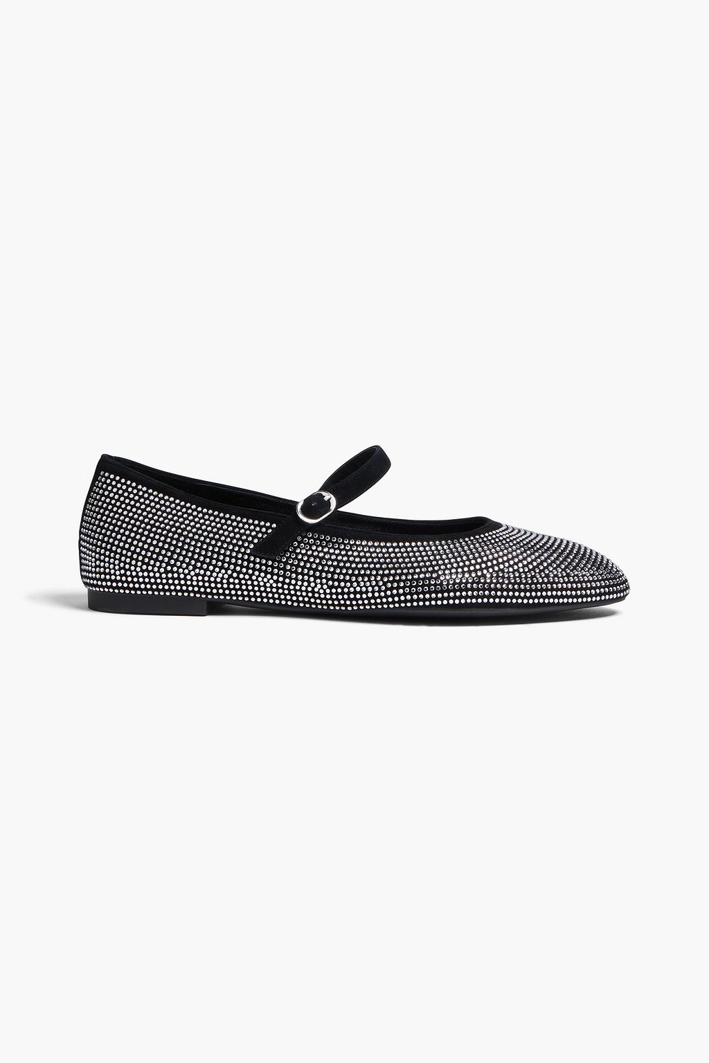 STUART WEITZMAN حذاء مسطّح ماري جين "أنالي" من الشامواه مزيّن بالكريستال
