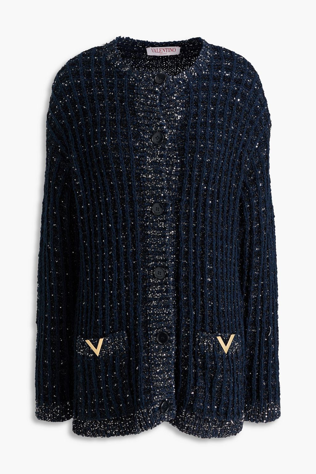 VALENTINO GARAVANI كارديغان من مزيج القطن المضلّع بلمعة معدنية مزركش
