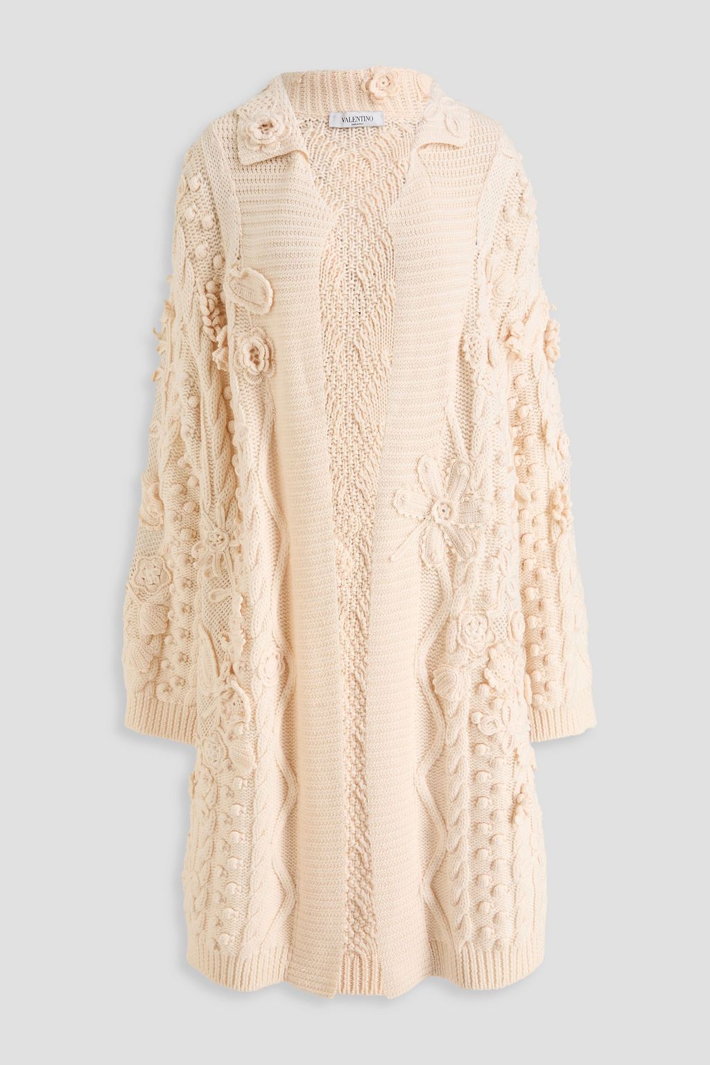 VALENTINO GARAVANI كاريغان من الصوف بحبكة مجدولة مُزيّن بزخارف الأزهار