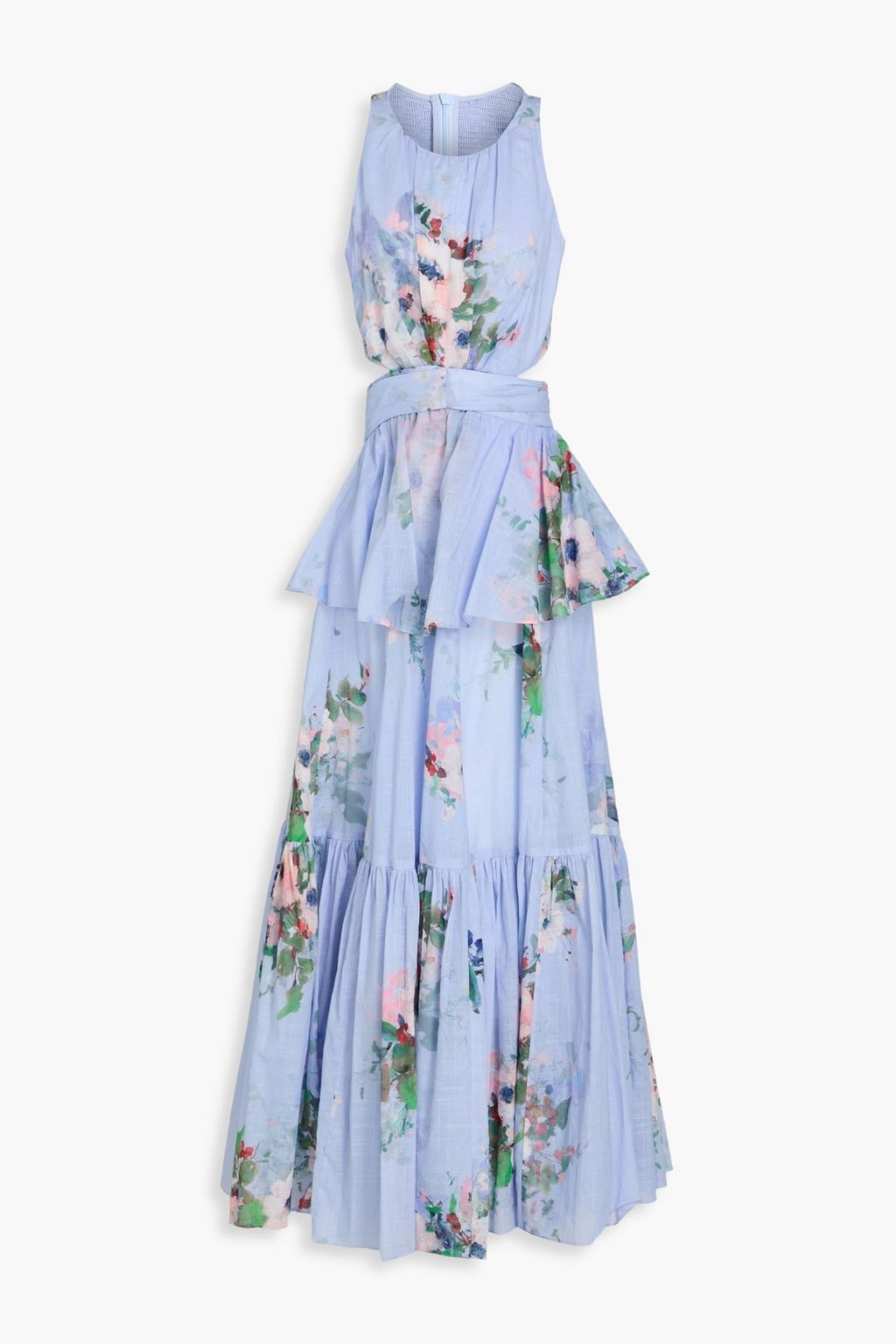 ZIMMERMANN فستان طويل مصنوع من القطن مزود بطبقات متدرجة ومزين بطبعة الأزهار