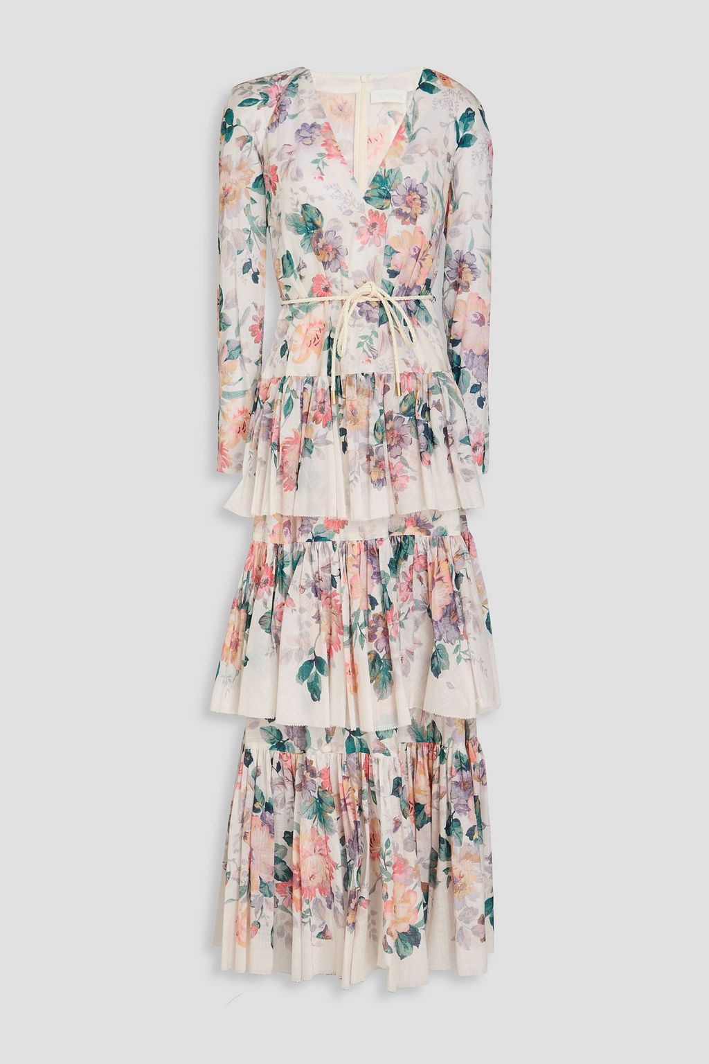 ZIMMERMANN فستان طويل مصنوع من القطن مزود بطبقات متدرجة ومزين بطبعة الأزهار