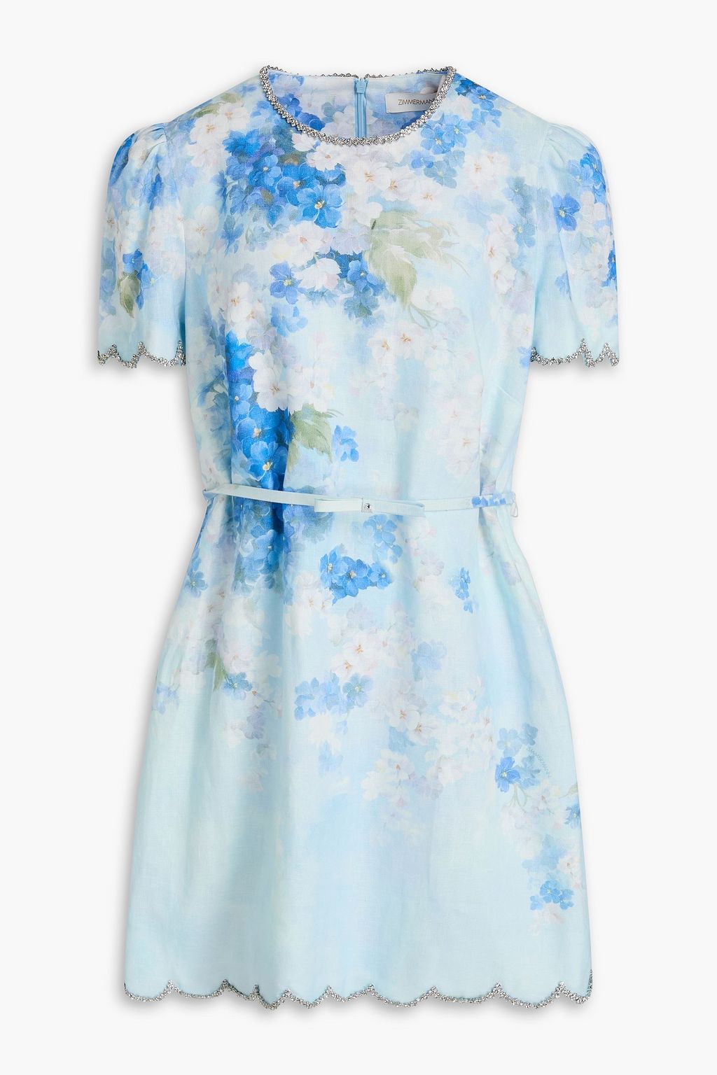 ZIMMERMANN Belted floral-print linen mini dress