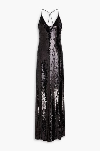 فستان متوسط الطول من الفيلور مزين بالخرز