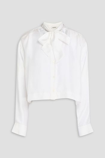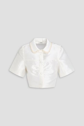 فستان أورا قصير من التول بلون ميتاليك بتصميم مطرّز