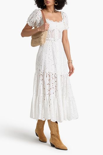 فستان طويل Persephone من القطن بتطريز إنكليزي مع حزام