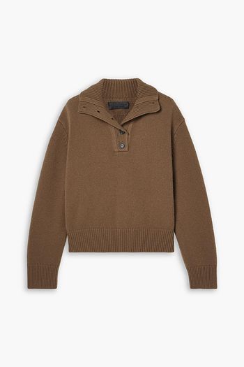 كنزة رياضية بياقة عالية من مزيج الكشمير والصوف