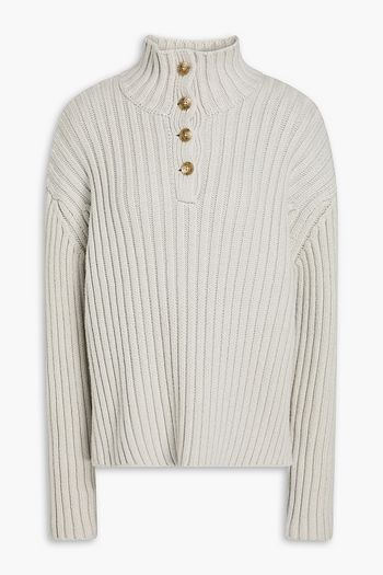 كنزة رياضية "أنار" بياقة عالية من مزيج الكشمير والصوف بحبكة مجدولة