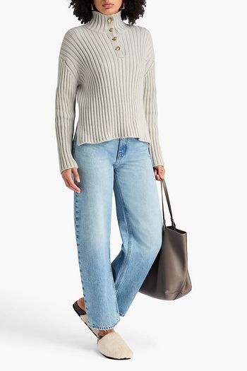 كنزة رياضية فضفاضة بياقة عالية من مزيج الكشمير وصوف المارينو محبوك بطريقة إنتارسيا