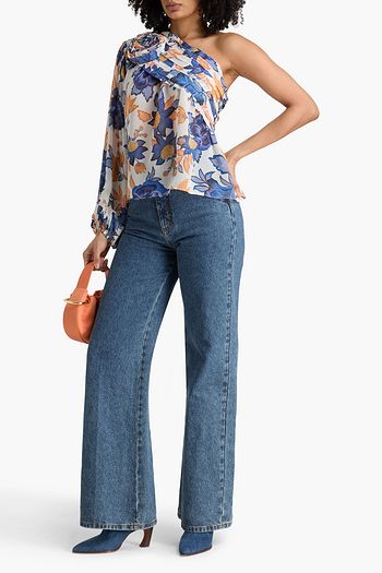 بلوزة درابيه بكتف واحدة وفتحة من البيكيه