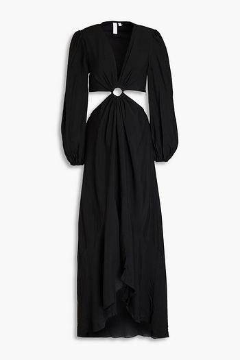 فستان طويل «شيروي» من حرير تويل بأسلوب ملتف بتصميم درابيه