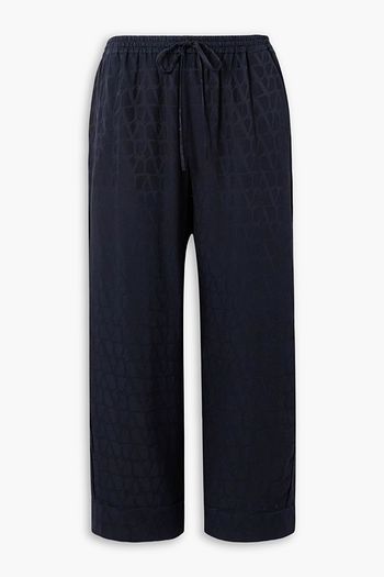 بنطال بأرجل واسعة من الحرير الصيني ومزين بطبعة الأزهار
