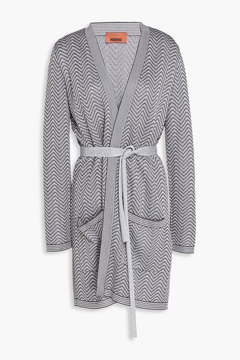 كارديغان قصير من القطن المضلّع مزين بالخرز