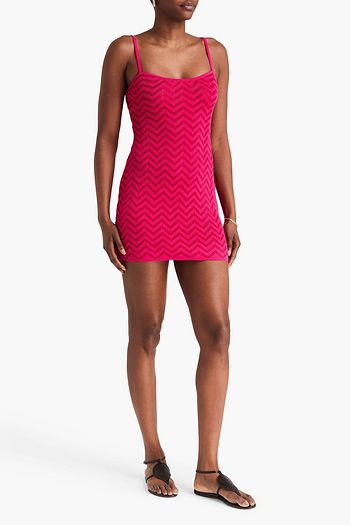 فستان قصير بحبكة كروشيه بلون معدني