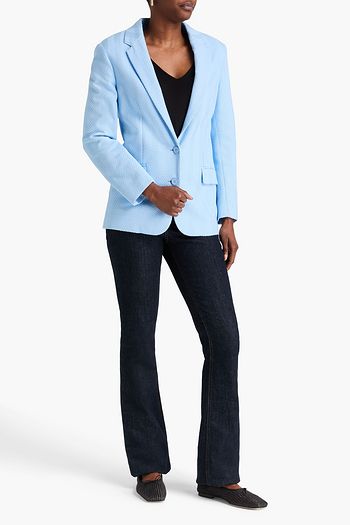 بليزر من المخمل المضلّع ومزيج الكشمير والقطن بصفين من الأزرار