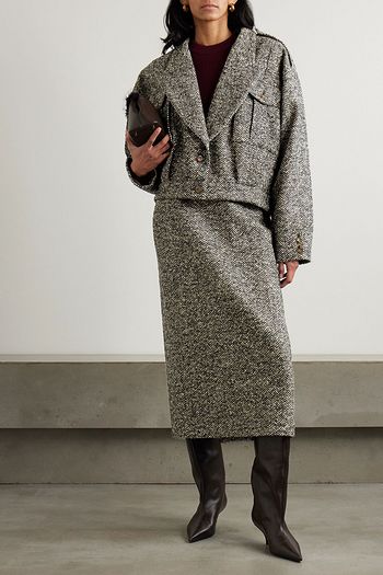 بليزر من مزيج الصوف بنقشة هيرنج بون وبصفين من الأزرار