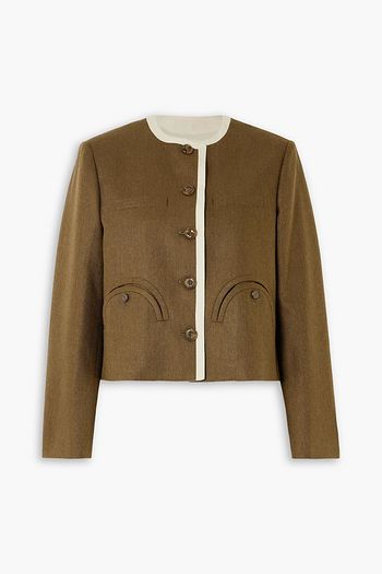بليزر من مزيج الصوف والكتان مزيّن بالخرز مع أزرار مزدوجة