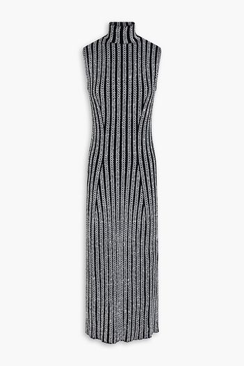 فستان متوسط الطول من مزيج الكشمير والصوف بحبكة مجدولة