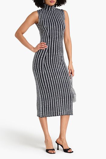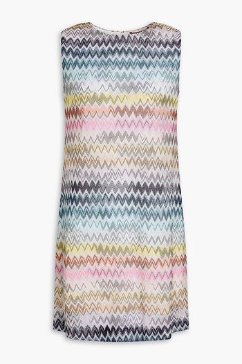 فستان متوسط الطول من مزيج من القطن بحبكة كروشيه وتصميم مخطط