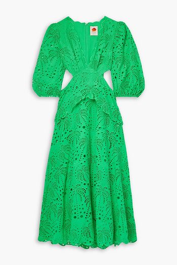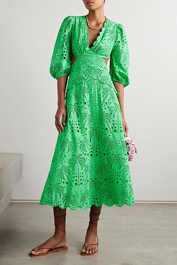 فستان متوسط الطول مصنوع من مزيج من القطن بتطريز إنجليزي