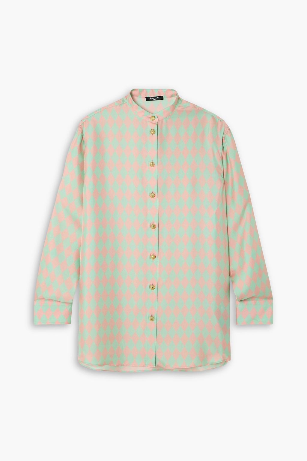 BALMAIN قميص argyle من الساتان الحريري بتصميم فضفاض