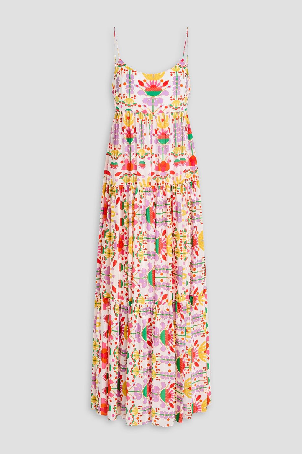 BORGO DE NOR فستان طويل "مارلي" من ساتان كريب بطبقات متدرجة ومزين بطبعة الأزهار