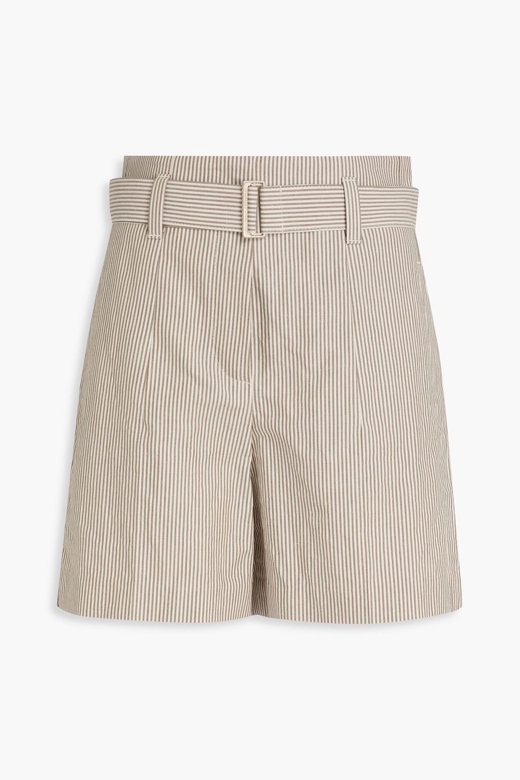 BRUNELLO CUCINELLI شورت من التويل المصنوع من مزيج الكتّان والقطن بتصميم مخطط