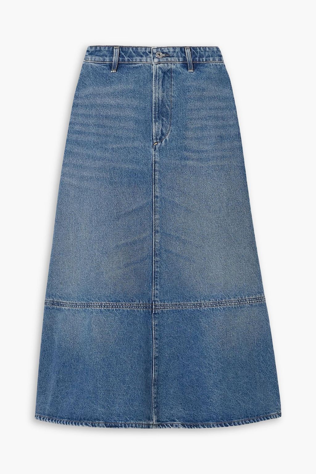 CITIZENS OF HUMANITY تنورة Cassia متوسطة الطول من الدنيم بقطع محاكة بجانب بعضها البعض